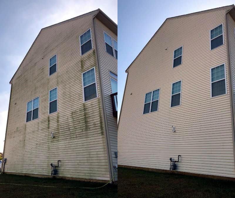 Pressure washing is effective for hard surfaces such as concrete, for vinyl siding pressure washing can cause unexpected damage. soft washing is a much safer & effective method for cleaning siding & softer surfaces